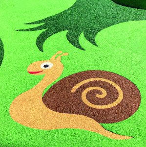 När man skapar ett fallunderlag i gummi på lekplatsen kan du få inbyggda 2D-element mot en liten extra kostnad. Figurerna gjuts in i fallunderlaget tillsammans med det översta lagret av gummi och blir på så sätt en del av den totala ytan.