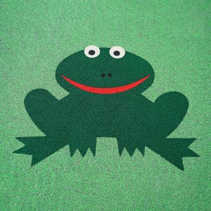 När man skapar ett fallunderlag i gummi på lekplatsen kan du få inbyggda 2D-element mot en liten extra kostnad. Figurerna gjuts in i fallunderlaget tillsammans med det översta lagret av gummi och blir på så sätt en del av den totala ytan.