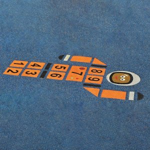 När man skapar ett fallunderlag i gummi på lekplatsen kan du få inbyggda 2D-element för en liten extra kostnad. Figurerna gjuts in i fallunderlaget tillsammans med det översta lagret av gummi och blir på så sätt en del av den totala ytan.