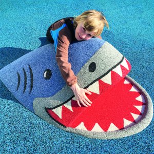 När man skapar ett fallunderlag i gummi på lekplatsen kan du få inbyggda 3D-element för ett överkomligt merpris. Figurerna gjuts in i fallunderlaget tillsammans med det översta lagret av gummi och blir på så sätt en del av den totala ytan.