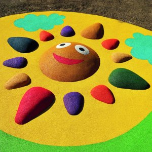 När man skapar ett fallunderlag i gummi på lekplatsen kan du få inbyggda 3D-element för ett överkomligt merpris. Figurerna gjuts in i fallunderlaget tillsammans med det översta lagret av gummi och blir på så sätt en del av den totala ytan.