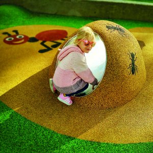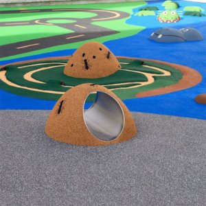 När man skapar ett fallunderlag i gummi på lekplatsen kan du få inbyggda 3D-element för ett överkomligt merpris. Figurerna gjuts in i fallunderlaget tillsammans med det översta lagret av gummi och blir på så sätt en del av den totala ytan.
